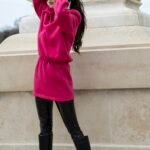 Suknelė pasiūta iš minkšto trikotažo su pūkeliu vidinėje pusėje, užtikrinančio komfortą ir šilumą, kartu išlaikant tvarkingą formą. Vientisas dizainas leidžia šį modelį dėvėti kaip pagrindinį įvaizdžio akcentą – nuo kasdienio miesto stiliaus iki vakaro derinių.