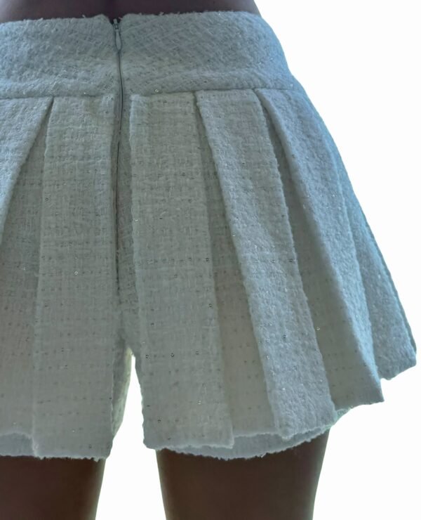 PLEATED TWEED SKORT – Struktūriniai tvido sijonšortai, kuriuose susitinka forma ir patogumas.