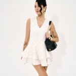 Suknelė išlaiko pusiausvyrą tarp elegancijos, lengvo judesio ir subtilaus skulptūriškumo.