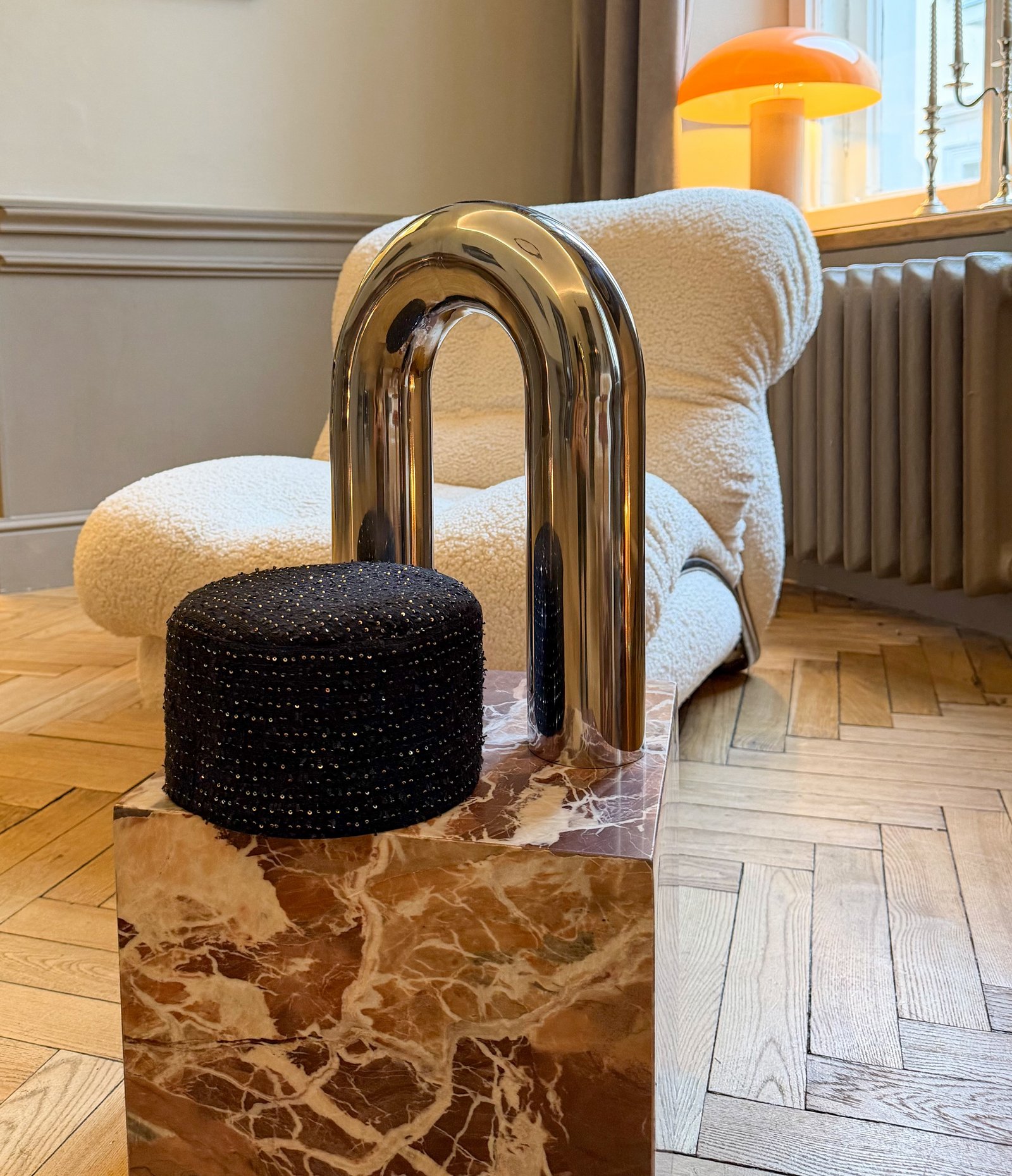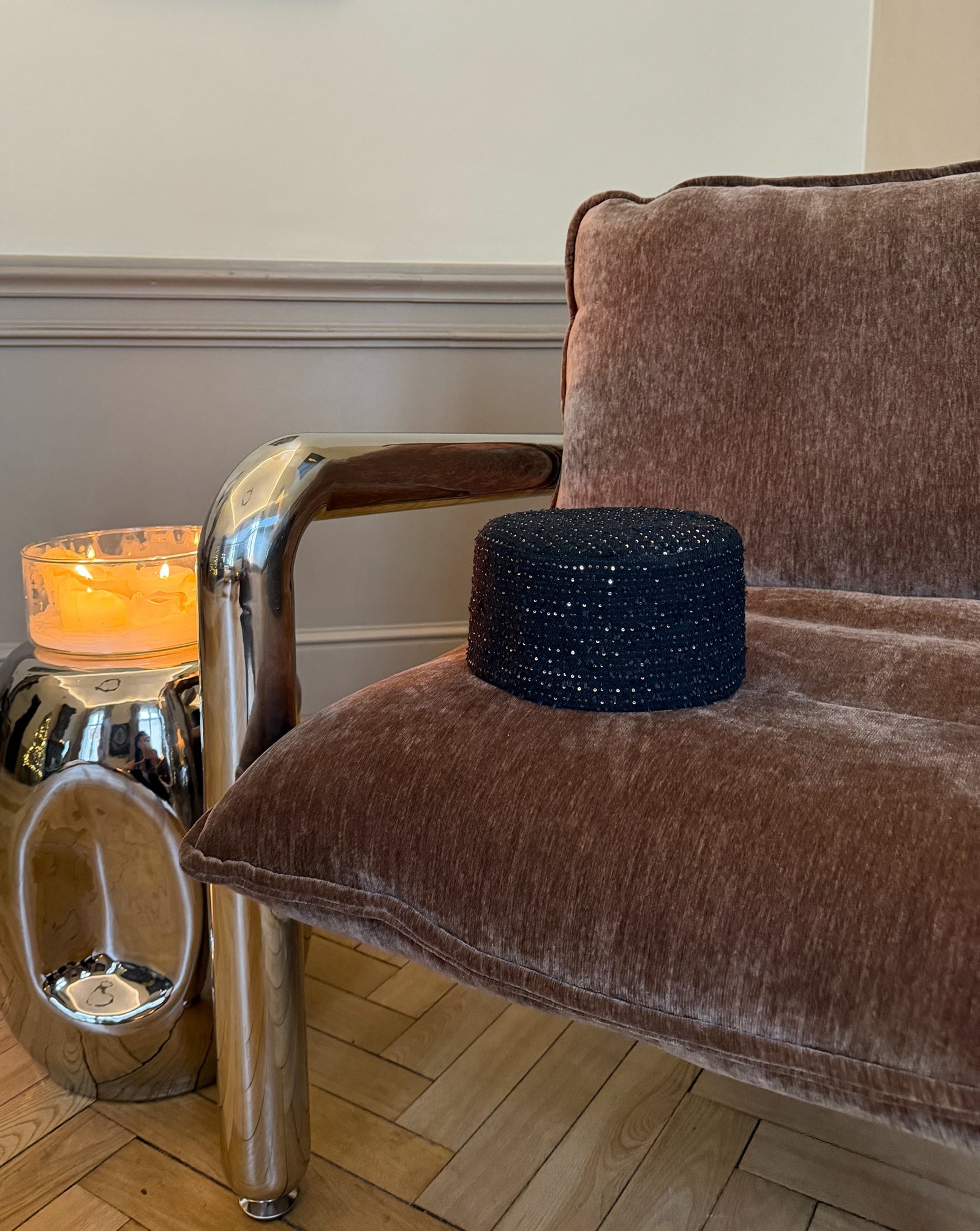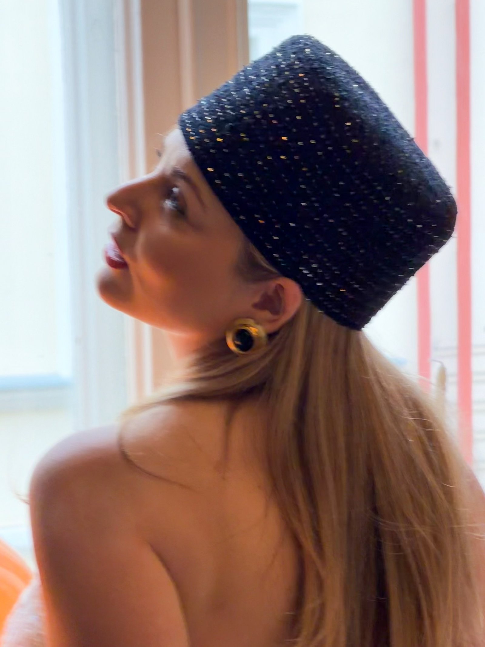Pagaminta iš aukščiausios kokybės tvido audinio, ši skrybėlė sukurta tam, kad bet kokiam įvaizdžiui suteiktų struktūros, charakterio ir tikslo. Jos švarus siluetas lengvai įrėmina veidą, o tekstūruotas audinys suteikia gylio ir tylios prabangos. Rankų darbo, kruopščiai pagaminta detalėms, ji išlaiko savo formą, tuo pačiu metu išlieka lengva ir patogi dėvėti.
